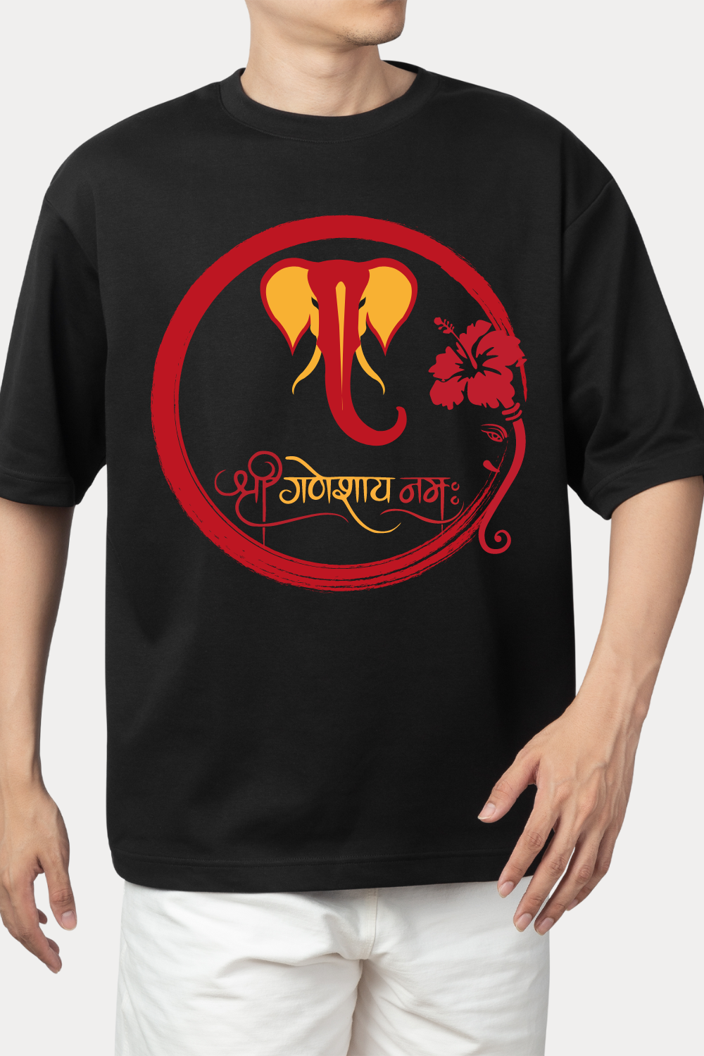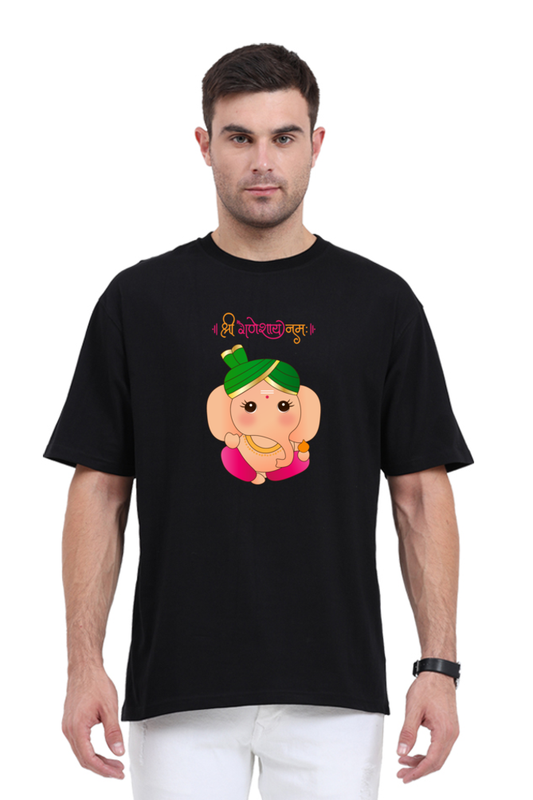 " श्री गणेशाय नमः " Cute Cartoon Ganesha Print Half Sleeve Oversized T-shirt