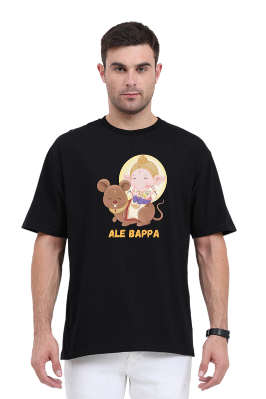 "Ale Bappa " Cute Ganesha withb Mushak Print Oversized T-shirt for Men