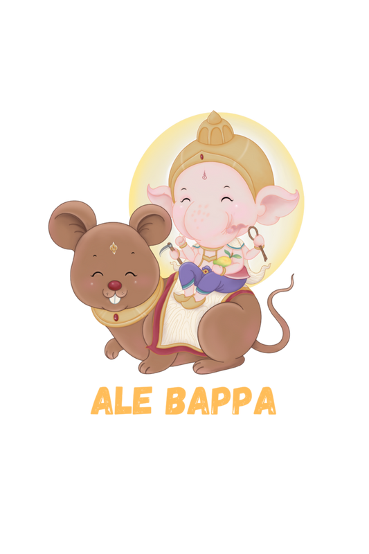 Ale Bappa Cute Ganesha with Mushak Printed Half Sleeve T-Shirt for Men