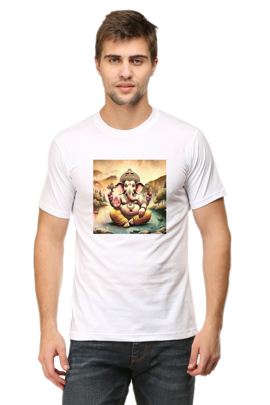 Shree Ganesha Sitting in Lotus Printed T-shirt for Men