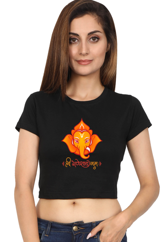 Ganeshaya Namah Print Half Sleeve T-shirt for Women