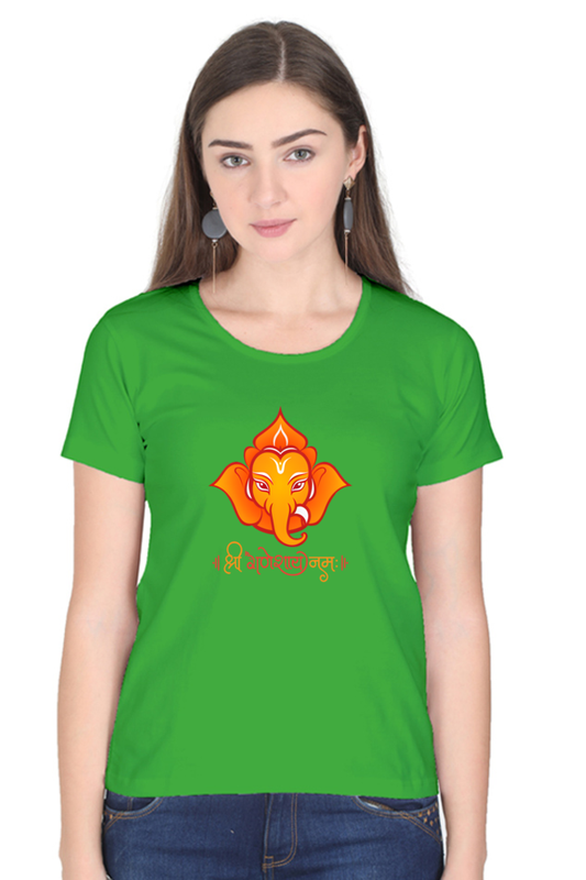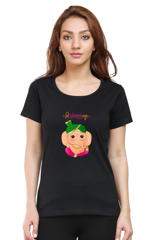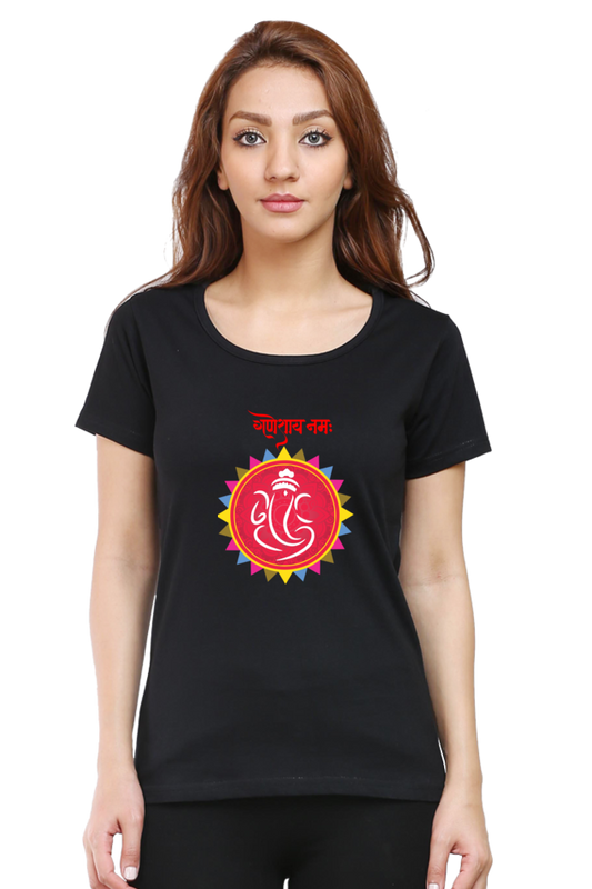 Ganeshaya Namah Print Half Sleeve T-shirt for Women