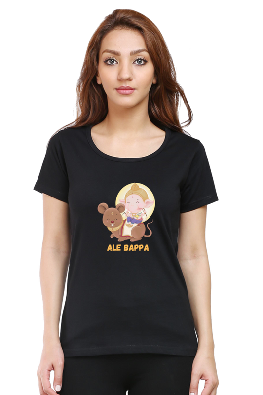 Ale Bappa Cute Ganesha with mushak print Half Sleeve T-shirt for Women