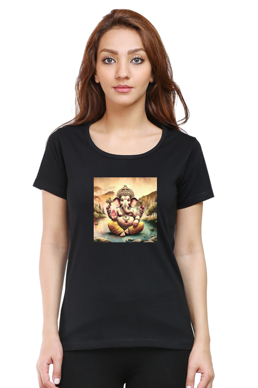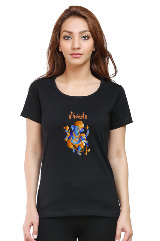 Vighnaharta Ganesha Print Half Sleeve T-shirt for Women